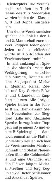 •  TischTennis-Niederpleis.de  •  Tischtennisabteilung des TuS 1901 Niederpleis   •