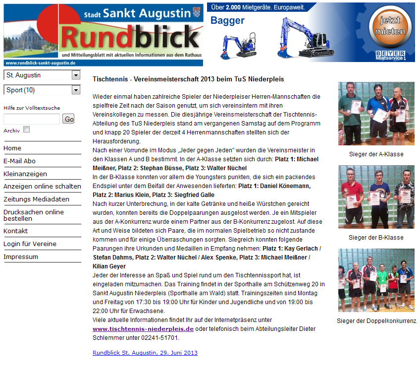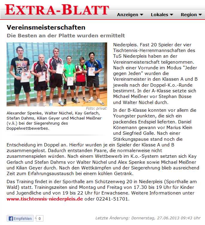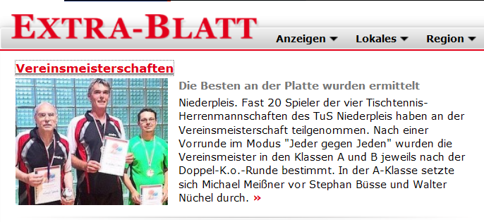 •  TischTennis-Niederpleis.de  •  Tischtennisabteilung des TuS 1901 Niederpleis   •